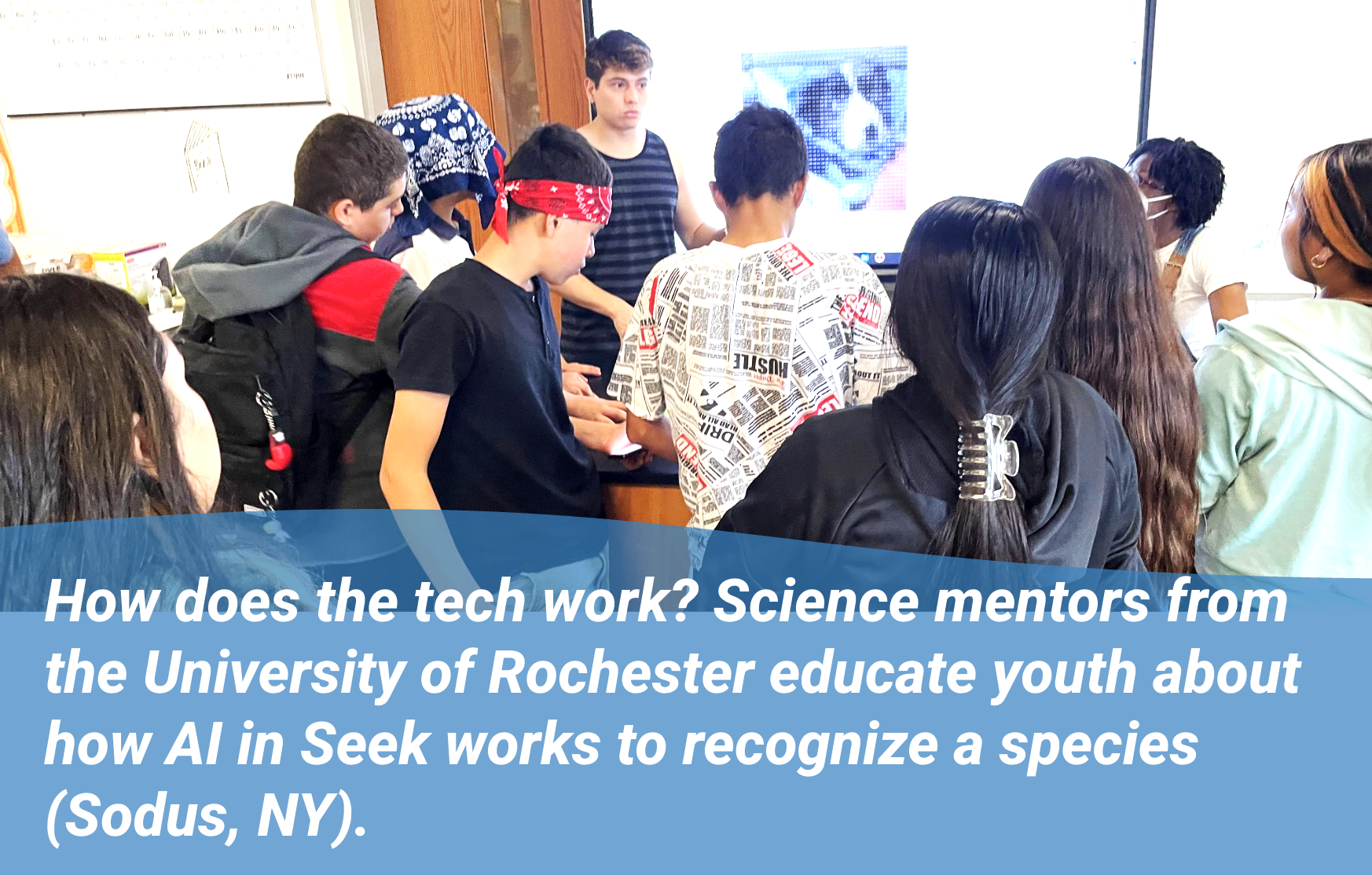 How does the tech work? Science mentors from the University of Rochester educate youth about how AI in Seek works to recognize a species.