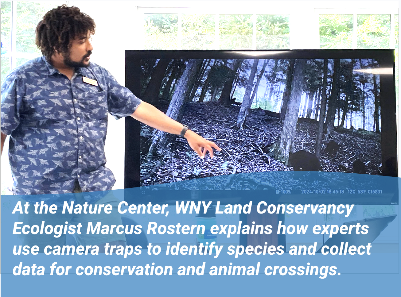 At the Nature Center, WNY Land Conservancy ecologist explains how experts use camera traps to identify species and collect data for conservation and animal crossings.